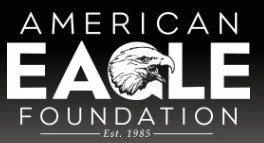 Illustration of an eagle's head with stylized gray, pink, and yellow feather design.